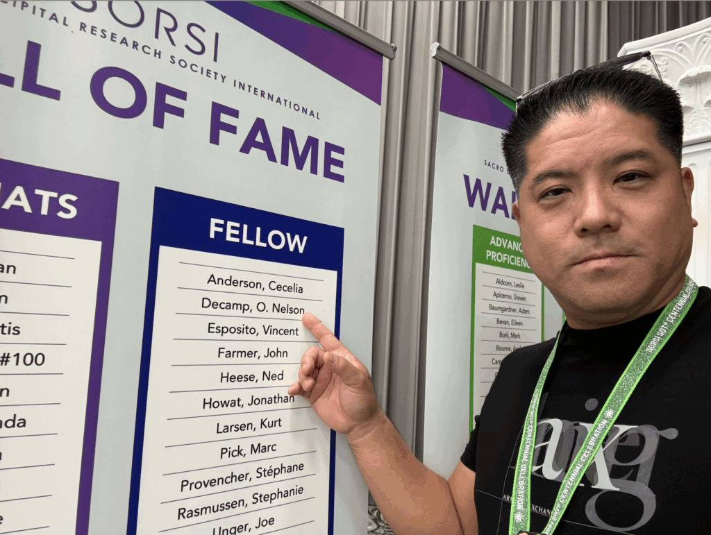 初日の9日木曜日開催されるホテルに到着して最初に目についた物はSOT100周年を祝福する横断幕でした。そして、その傍にはいくつかの名前が並べられていましたがその中に自分のカイロプラクティックの師匠であるDr. Nelson Decampの名前があるではありませんか!!3年前に亡き師匠でありますが、まだまだ技術的に未熟な自分が疑問や質問が出てきた時に誰にも聞けず悶々とした日々がありましたが、今回のセミナーでインストラクターの先生に幾つかの質問をして答えを得る事が出来ました。